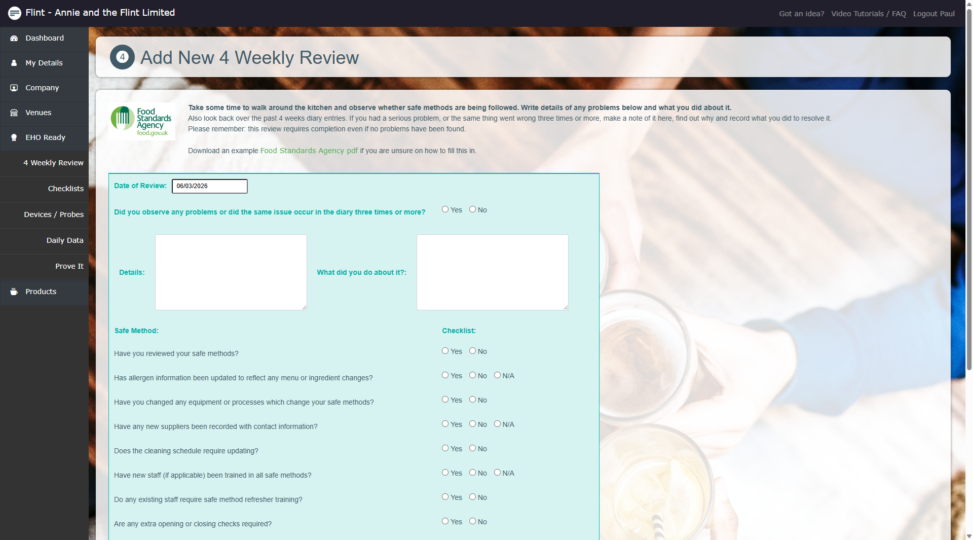 Start Free Trial Read MoreStay ready for EHO visits without chasing paperwork. Flint helps UK hospitality venues keep food safety records organised in one place, so you can see what’s been done, what’s missing, and what needs attention. Log daily checks, “prove it” records, probe calibrations, temperature readings and key compliance tasks as you go — even during busy service. You’ll always have a clear, up-to-date picture of your compliance status, with records stored safely and easy to access when you need them.