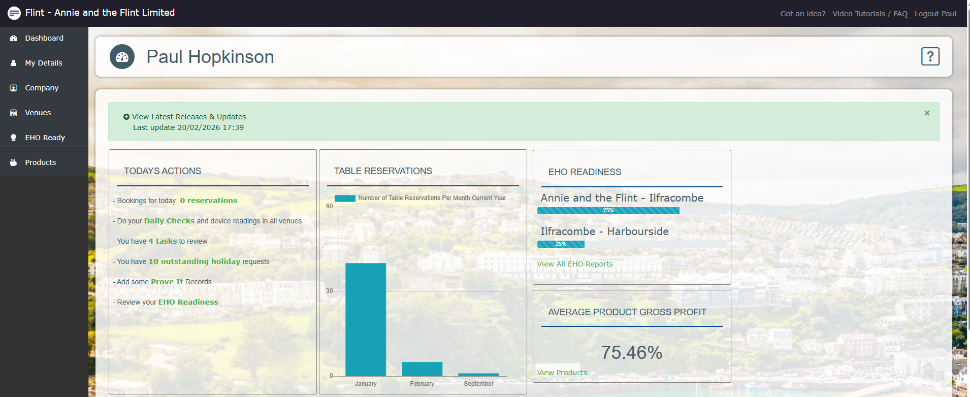 'As a brand new hospitality enterprise we wanted to make sure that we started off on the right foot by choosing the right systems for the business. We trialled a few hospitality systems but Flint gave us by far the best options for the price point- other like for like products coming in at over twice the price. We've now been using Flint for a few months and it's given us the confidence that all our records are up to date and correct. We're loving the new features that keep getting rolled out and are looking forward to continuing using Flint for years to come.' Kate Collet-Fenson - Lucias Pantry & Kitchen