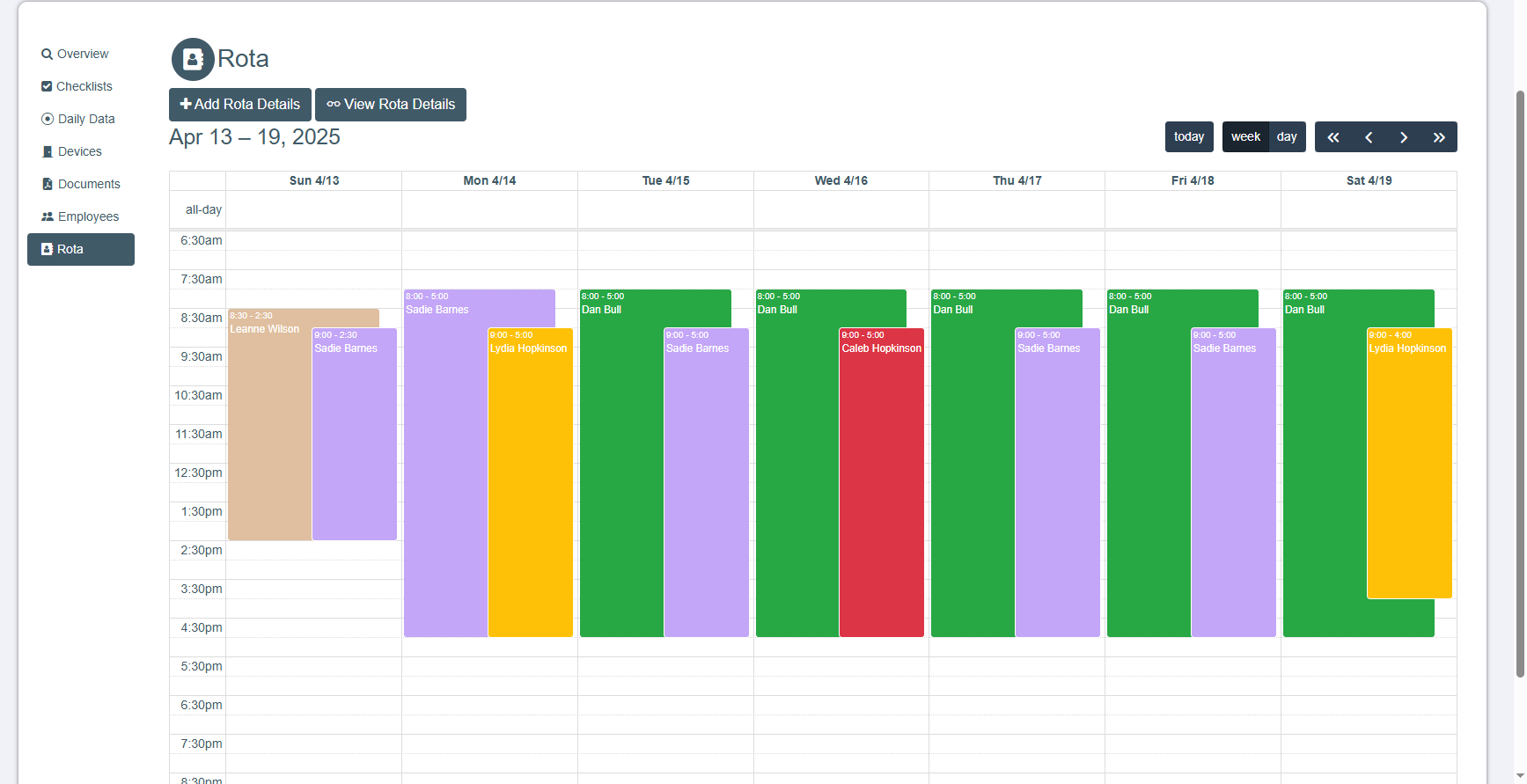 rotas, timesheets and employee management.